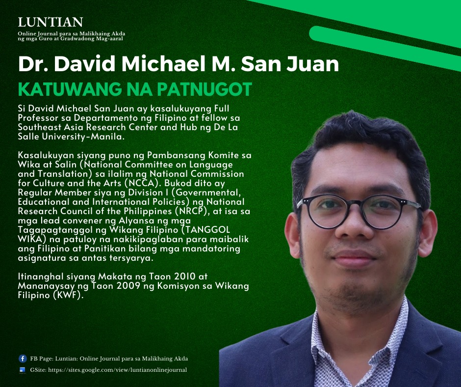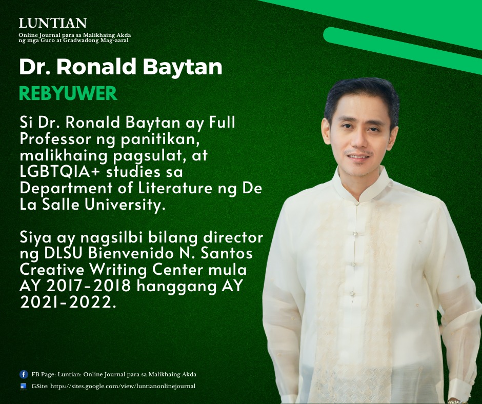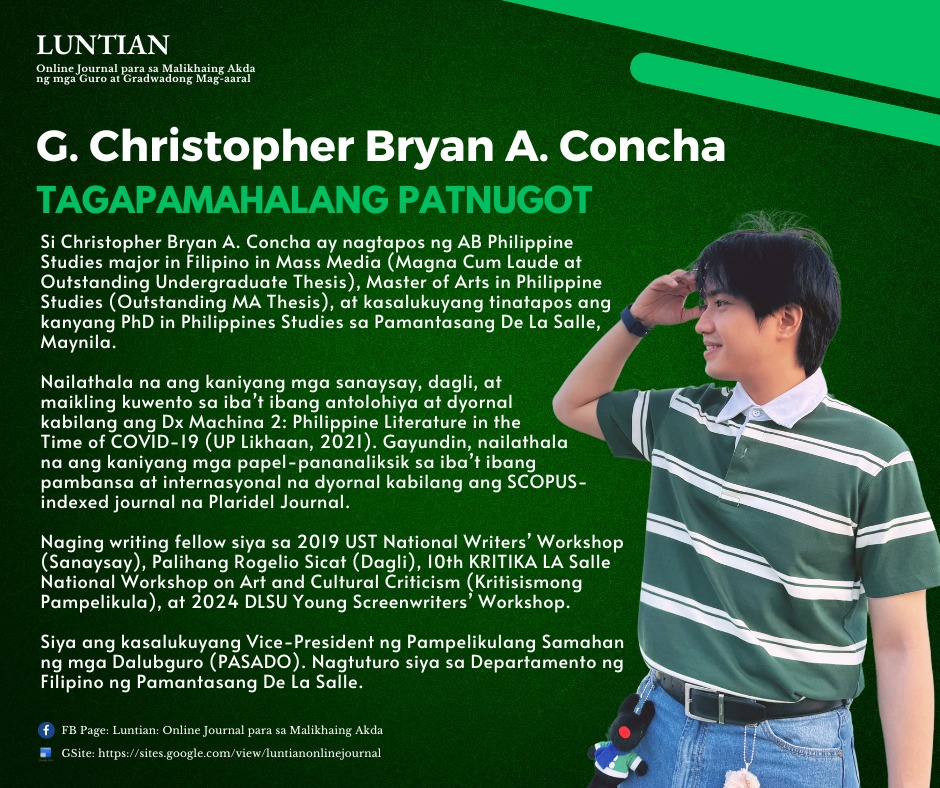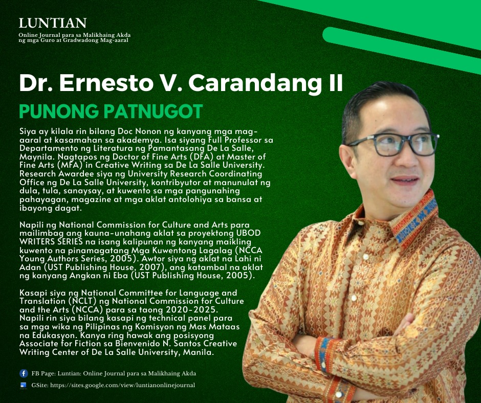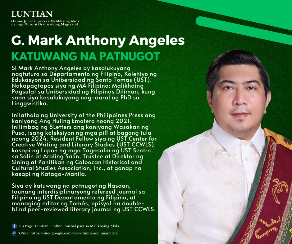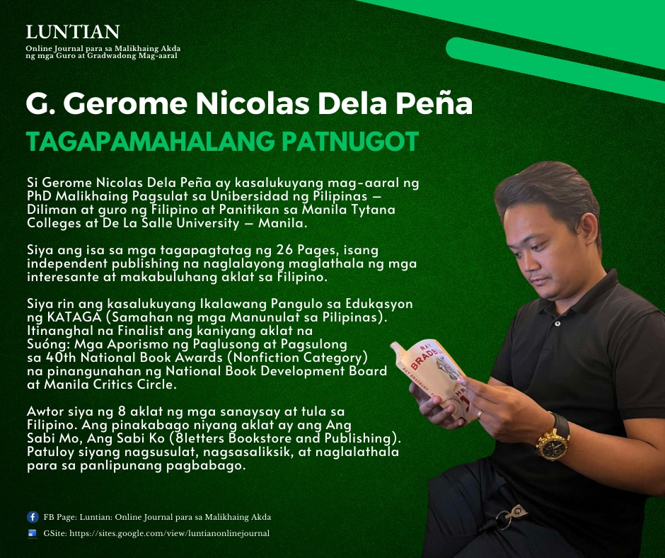 Tuloy po kayo sa Luntian Online Journal para sa Malikhaing Akda ng mga Guro at Gradwadong Mag-aaral (inilalathala ng Pambansang Samahan sa Linggwistika at Literaturang Filipino/PSLLF).